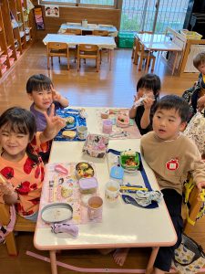 以上児の子どもたちは自分で行きたいクラスに出かけお弁当を食べました。