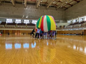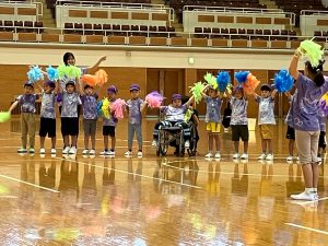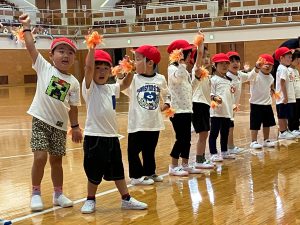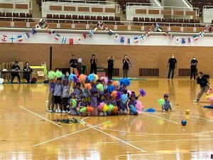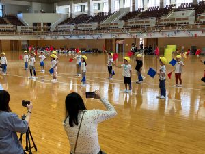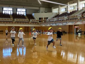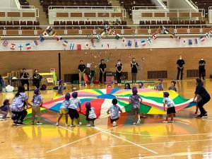 選手宣誓の後には、みんなで準備体操の♪いっとうしょう体操♪を踊りました。