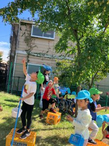ゴールした後は、風船のカーテンで遊んだり、車に乗って遊んだりして、楽しい時間を過ごしました。