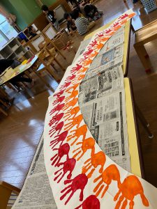 そしてみんなの手形が集まると素晴らしい虹ができました。