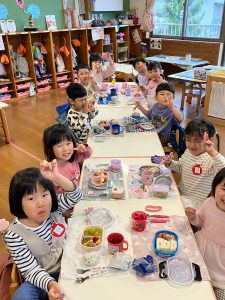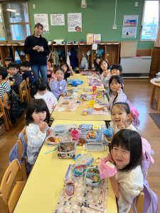小さいクラスの子どもの中には、お弁当バックを離さず持っている子どももいました。