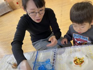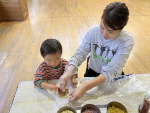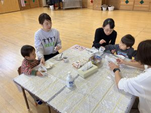 手軽に作れるのでぜひお家でもやってみてくださいね。次回は、12月4日(木)です。クリスマスの製作と給食も一緒に食べましょう。お楽しみに!!