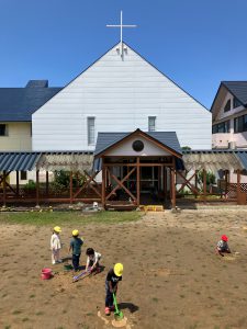 お出迎えをした後は、教会に移動しみんなで礼拝を守りました。いづみ幼稚園の中西先生から「旅立ち」についてイエス様のお話を聞きました。