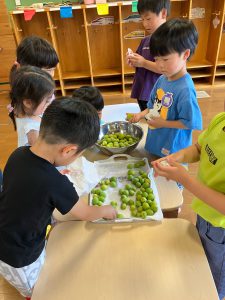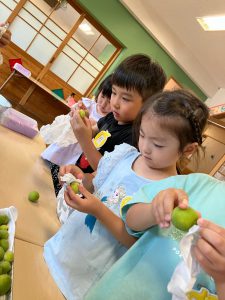 片付けをして、いつものダンスから始まり、今日はクッキングで「いももち」を作りました。