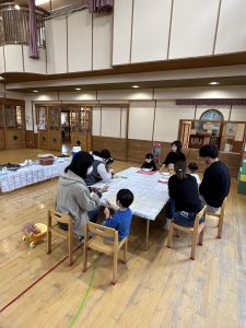 出席カードにシールを貼って、前回できなかった自己紹介もできました。みんなのお名前を覚えて、これからも仲良く楽しく過ごしていきましょう!
